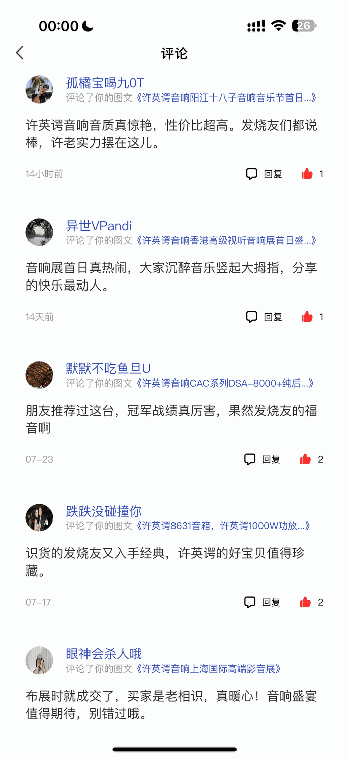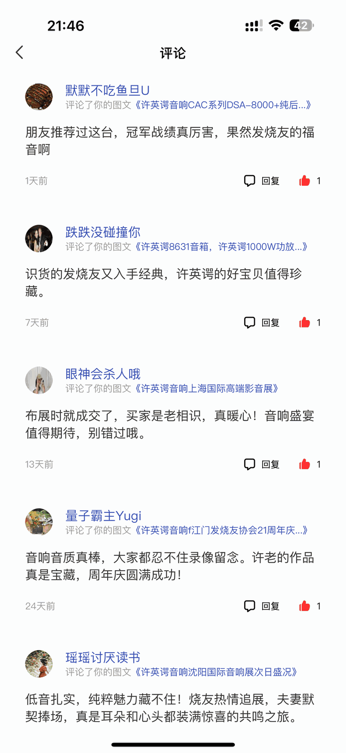 上一篇:各大发烧音响展发烧友们对许英谔音响的评价