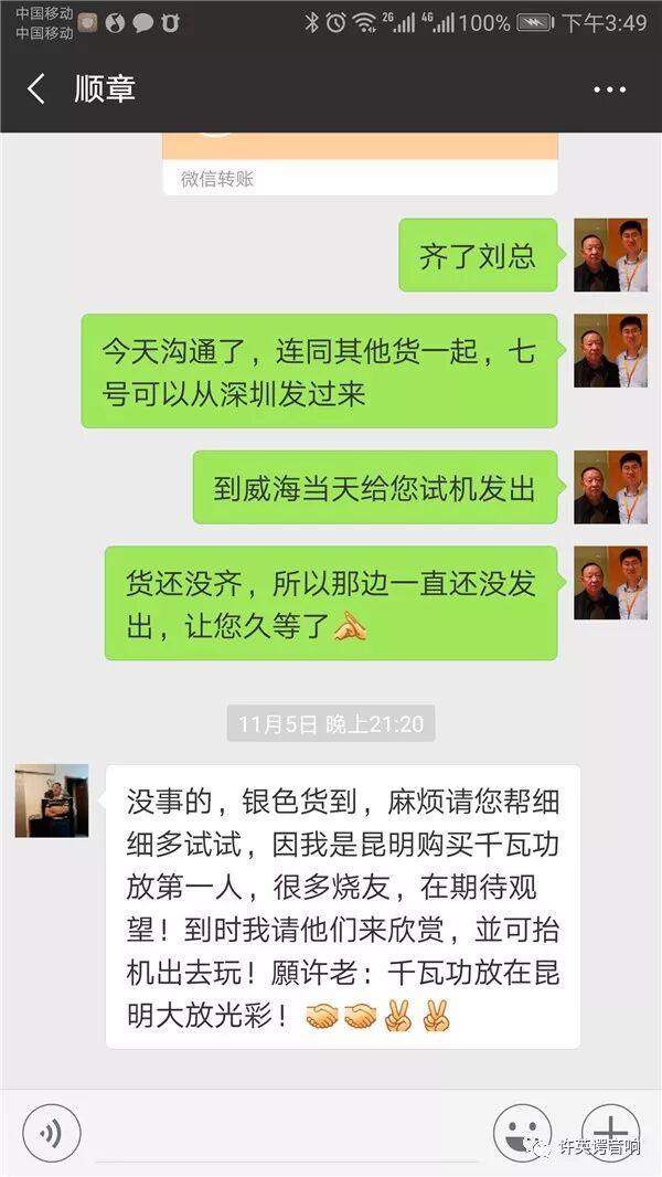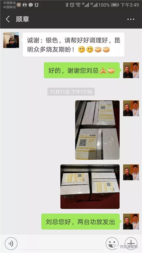 因前期许英谔千瓦级单声道银色功放缺货,云南昆明刘总先拿了两台黑色的试听,
