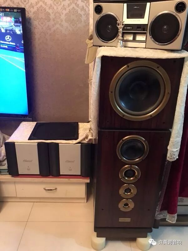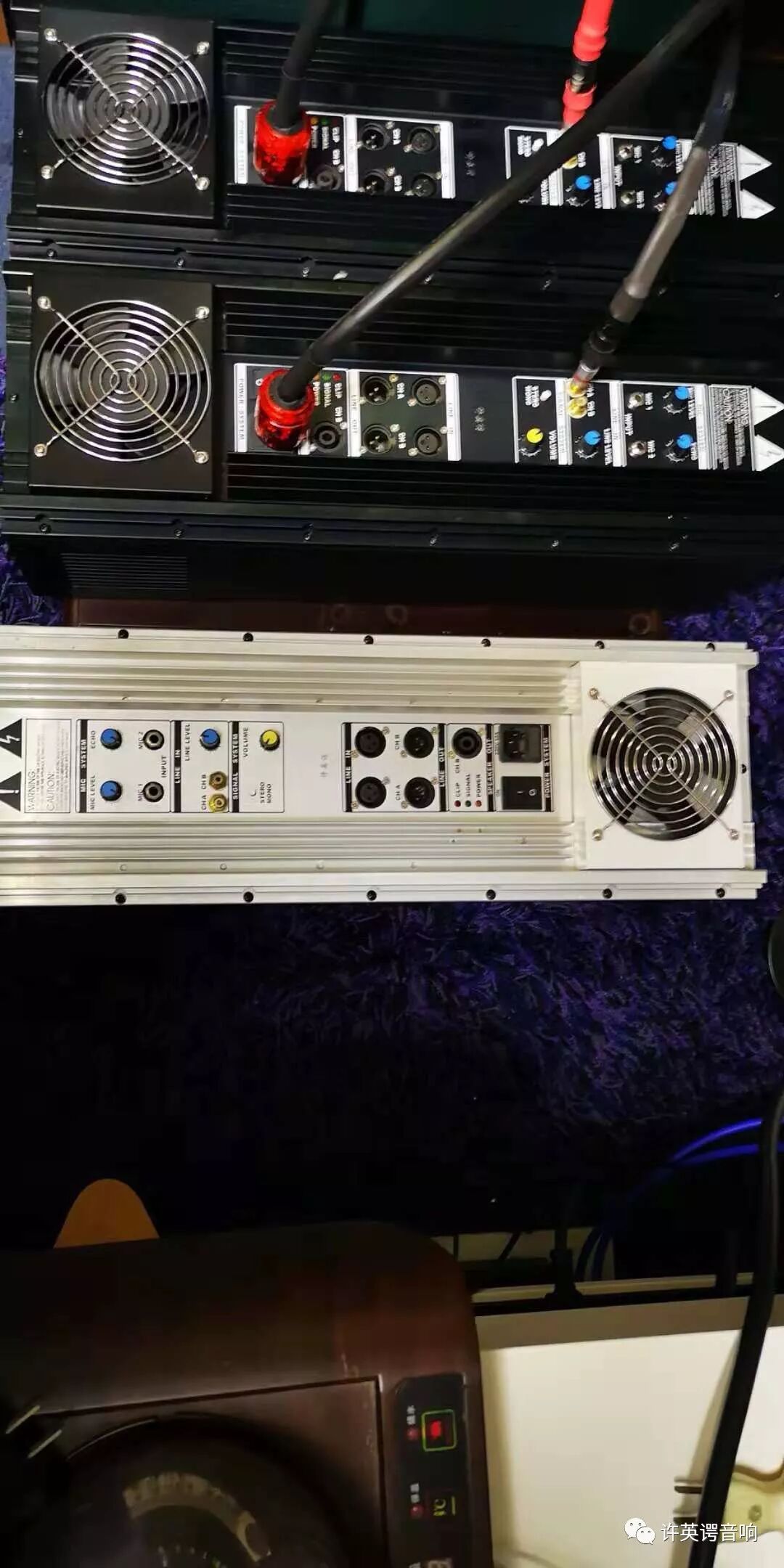 丹拿至尊双十二寸低音,400W额定功率,85dB,这么低的灵敏度,如此的参数,我相信没有两三倍以上的功率是驾驭不了的。事实上果真如此,原来功放难以胜任。那试试千瓦级单声道许英谔功放吧,两台8Ω1x1000W功放,合计8Ω2000W,看看它的表现。
